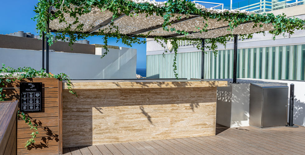 Located at the top of a high-end hotel, this rooftop bar opens exclusively during summer, offering guests a sophisticated setting with panoramic views. Our marble not only enhances the aesthetic appeal but also ensures durability against the elements.